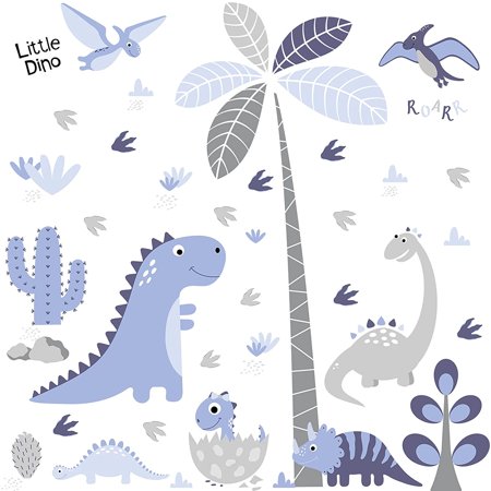 2 Sheets Dinosaur Wall Decals Dinosaur And Tree Wall Decals Blue Gray Dinosaur Wall Stickers Nursery Dino Wall Appliques For Kids Bedroom Living Room Nursery Walmart Canada